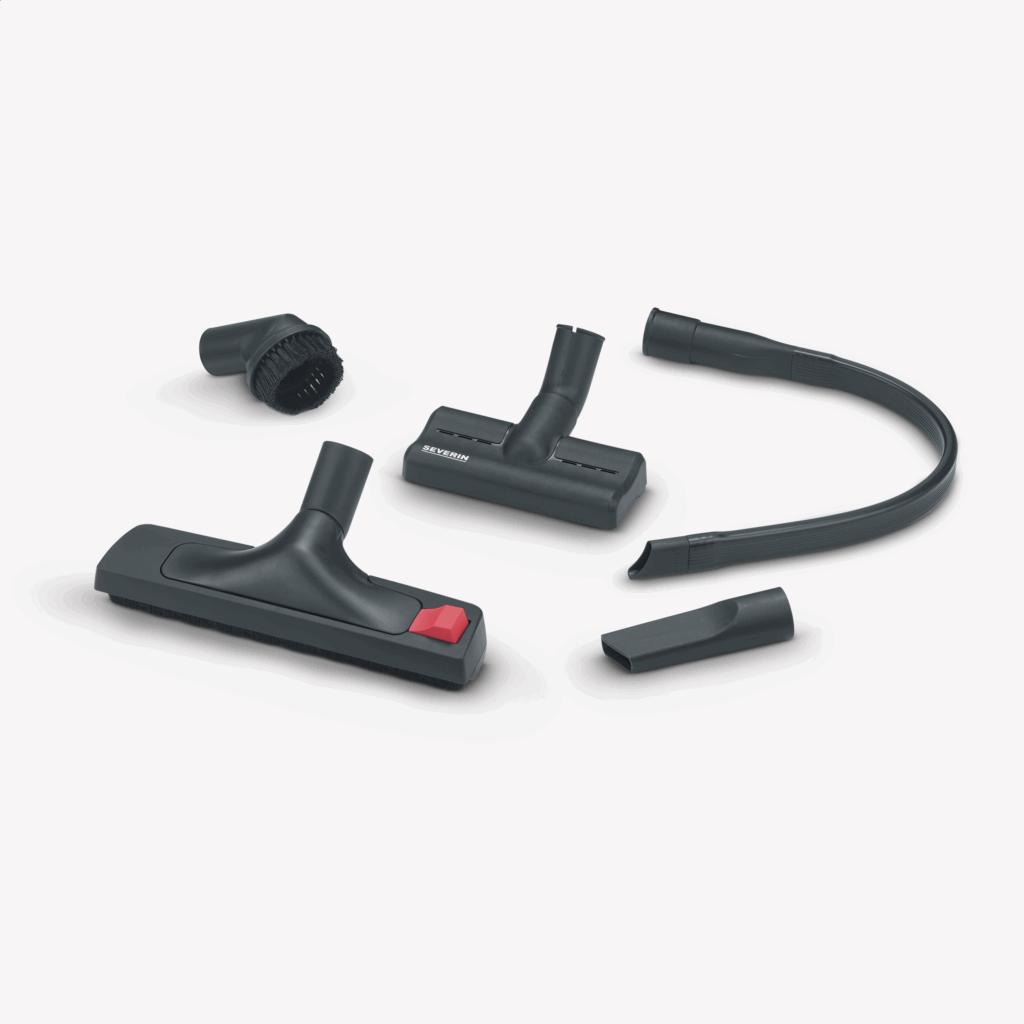 - Umfangreicher Lieferumfang: XXL-Polsterdüse, flexible Fugendüse, Click-Brush-System, Fugen- und Möbelaufsatz sowie einer Zubehörhalterung am Saugrohr.